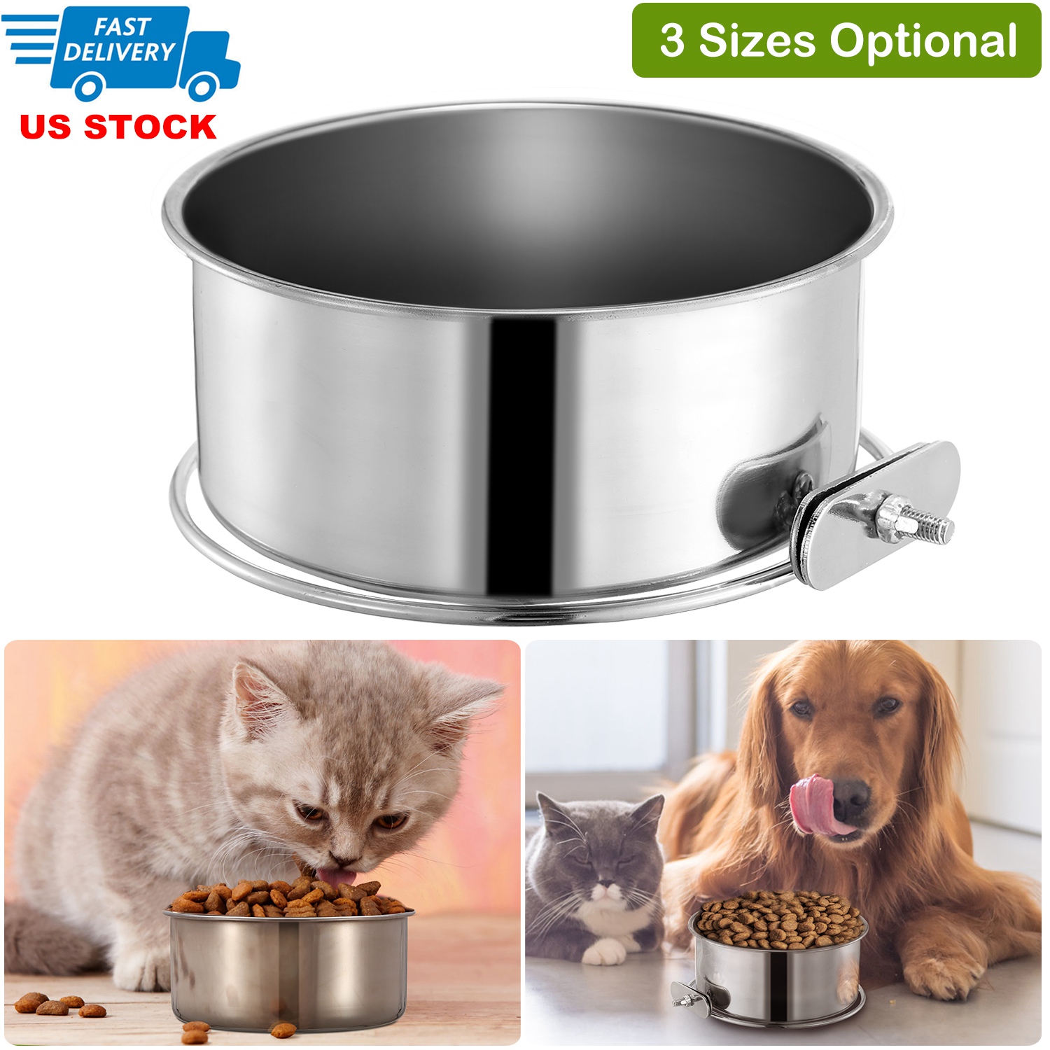 Stainless Steel Dog Bowl Pets Hanging Food Bowl Detachable Pet Cage Food Water Bowl with Clamp Holder
